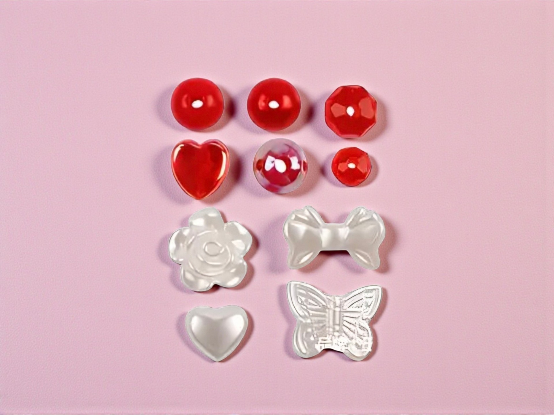Akryyli helmiä, rusetteja ym...kaikki 330kpl