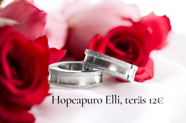 Hopeanväriset koruteräksiset korvakorut. Renkaan halkaisija on 13 mm ja leveys 4 mm. Korvakoruissa kätevä saranalukitus.