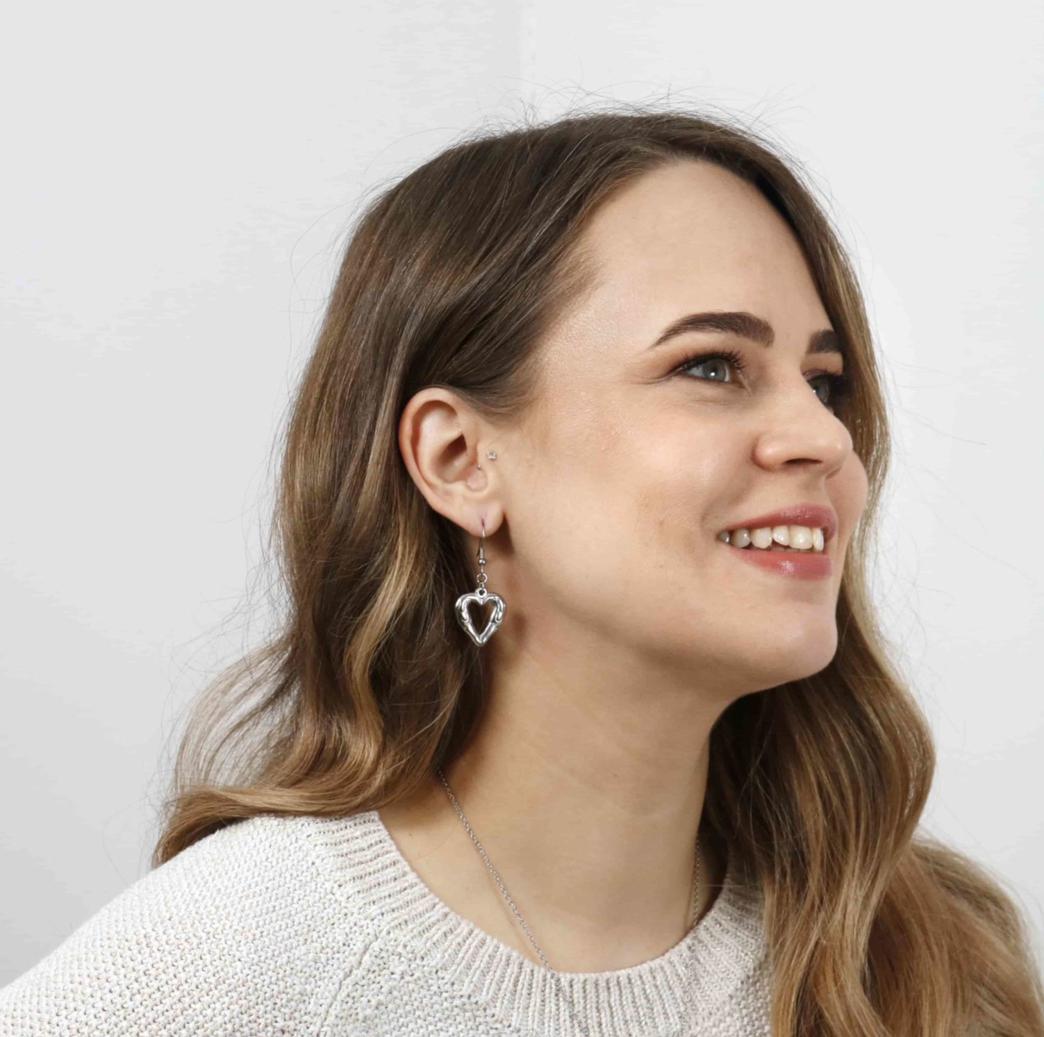 Sydämenmuotoiset, suloistakin suloisemmat korvakorut, joissa on kauniita sulkamaisia yksityiskohtia. Korvakorujen korkeus ilman koukkua on 22 mm ja leveys 20 mm, paksuus 3 mm.