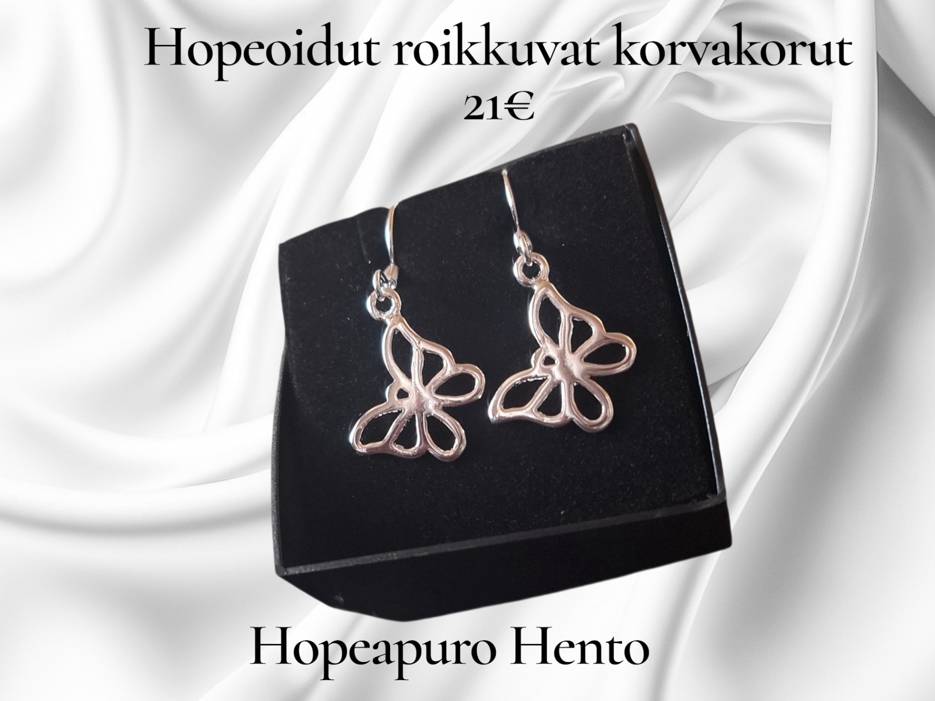 Kauniit perhos- aiheiset korvakorut koukuilla.