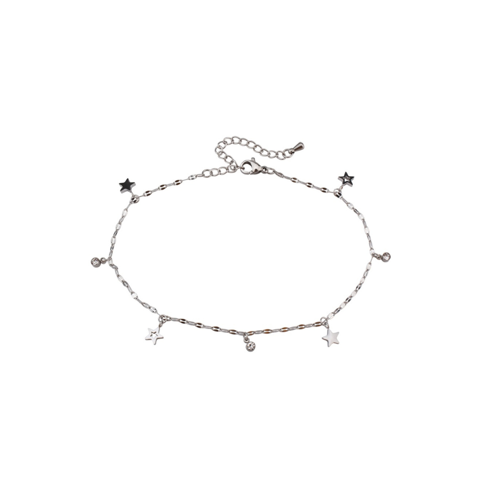 Ketjun pituus 23 cm + 5 cm Nilkkakorussa on papukaijalukko. Ihanat tähtöset roikkuvat ketjussa.
