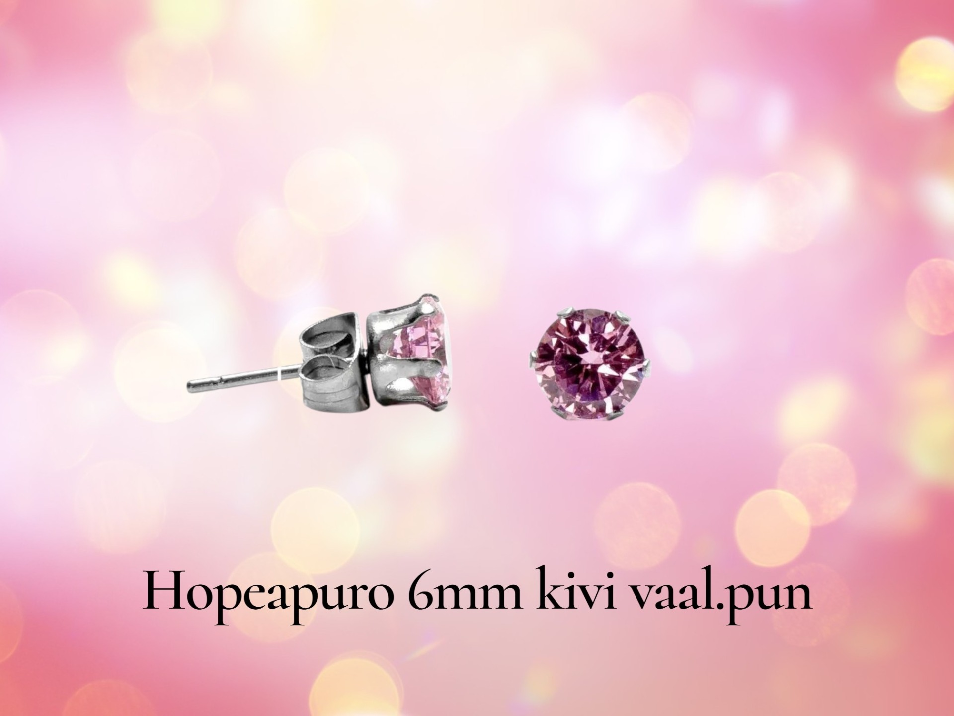 Koruteräksiset nappikorvakorut, joissa on kauniisti säihkyvät, pyöreän muotoiset kivikoristeet. Kivien väri on vaaleanpunainen ja halkaisija 6 mm. Näillä koruilla viimeistelet arkityyliisi. Kivi-korut ovat helposti yhdisteltävissä asuun kuin asuun ja värivalikoimaa riittää.
