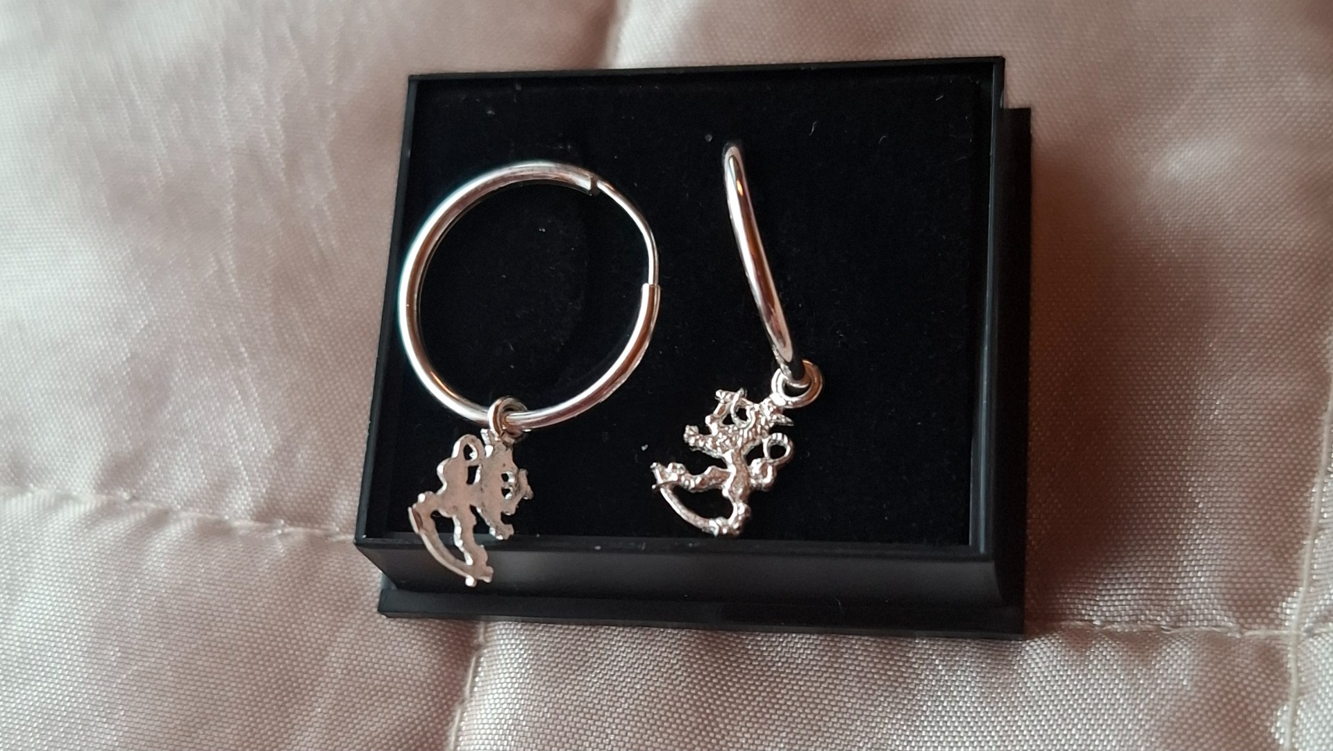 Suloiset pikkuiset Leijona korvakorut renkailla.