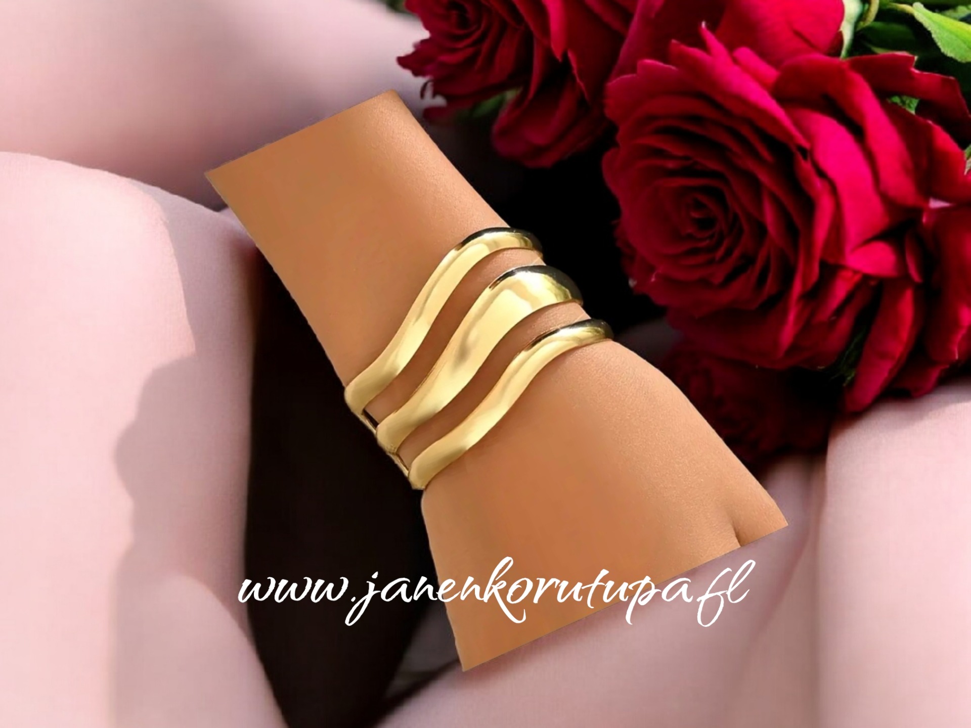 Kaunis rannekoru. Materiaali kullan värinen ruostumaton nikkelivapaa teräs.