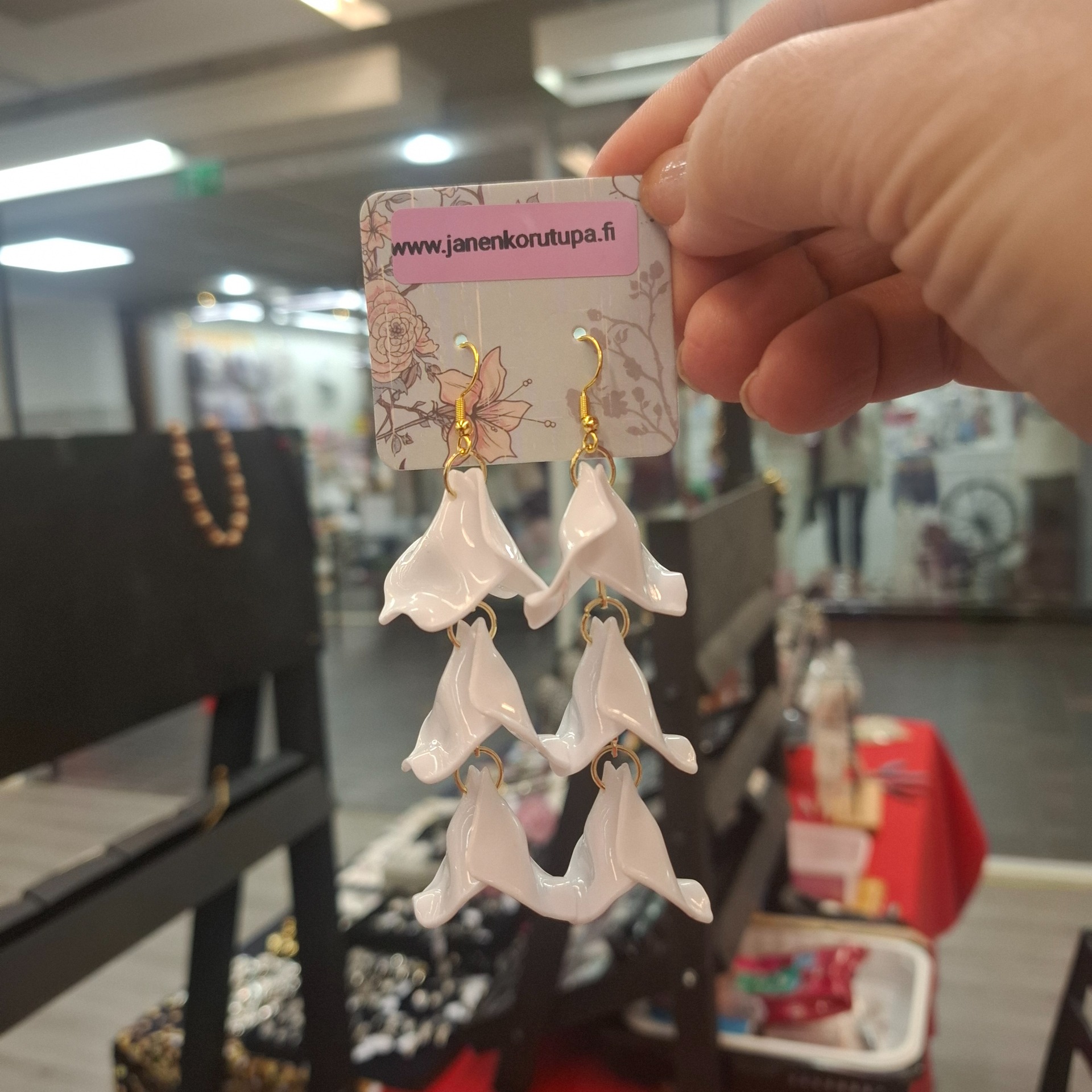 Kauniit valkoiset roikkuvat korvakorut.