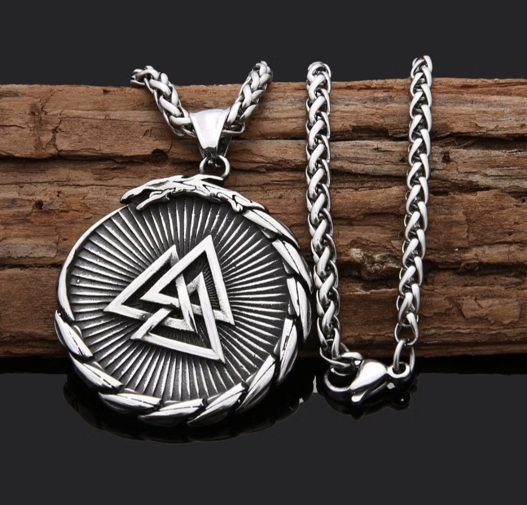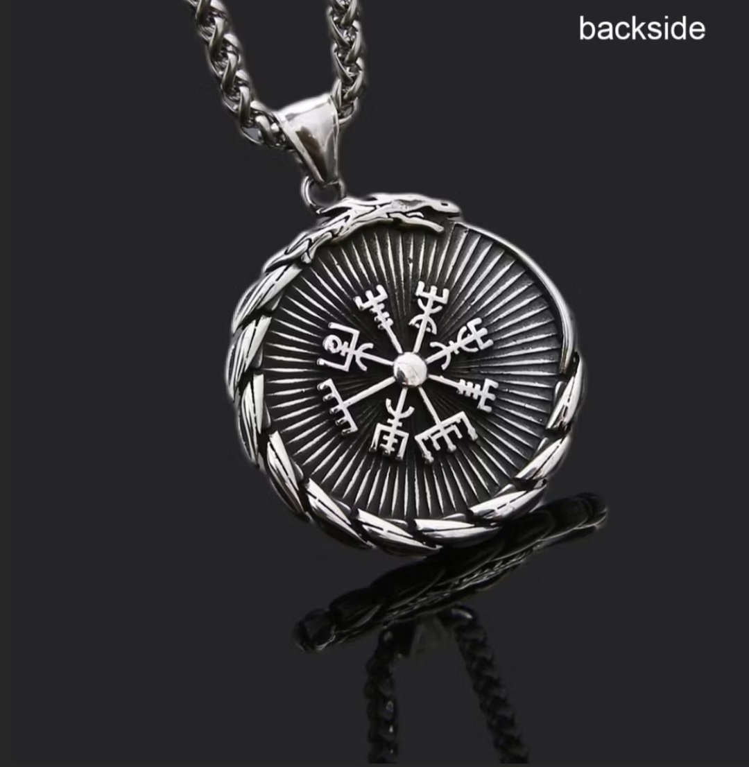 Kaulakoru on korkealaatuista ruostumatonta terästä, jossa on pähkinäsolmu ja Vegvisir.
